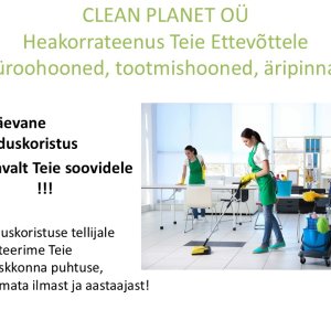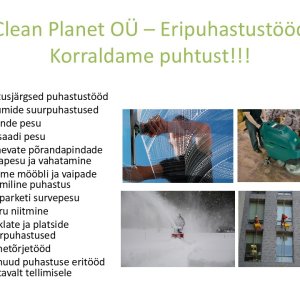 Clean Planet OÜ alustas tööd 2003. aasta sügisel. Meie pealmisteks tegevusteks on koristus- ja puhastusteenused, mida osutame Tartus, Rakveres, Tallinnas, Pärnus, Viljandis ja nende linnade lähiümbruses.